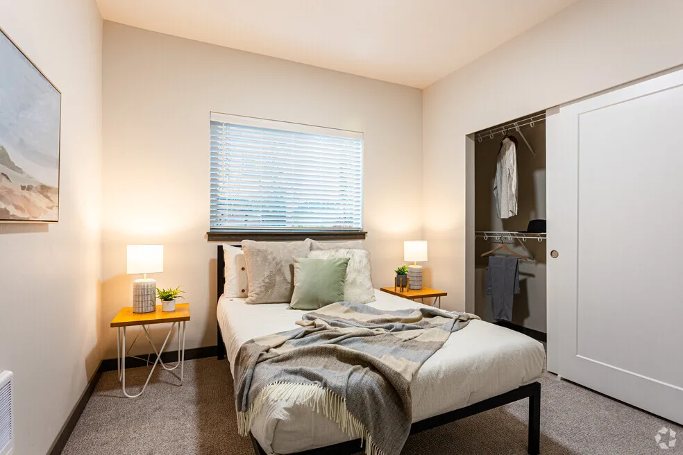 Our studio, one-bedroom, and 2-bedroom apartment homes are a great value featuring luxury plank vinyl flooring, hard surface countertops, stainless steel appliances, spacious balconies / patios and a full-size washer and dryer. Select apartment homes feature air-conditioning, air-conditioning ports, additional storage, vaulted ceilings, and mountain views. Our community features carports, storage, package lockers, a pickleball court, playground, community barbecue, clubhouse, fitness center, and business center.SEE FLOOR PLANS